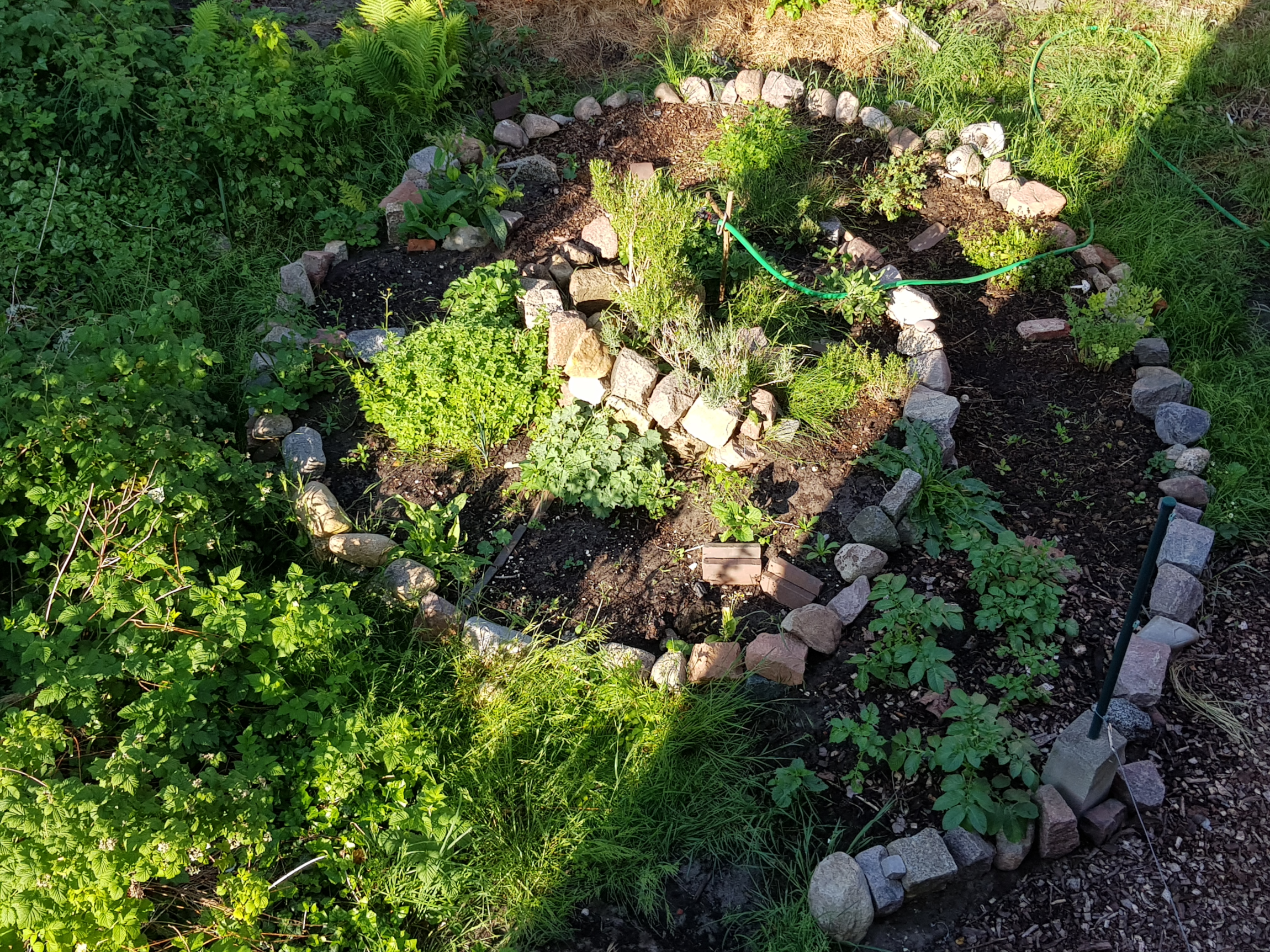 mehrjährige Kräuter- und Gewürzstauden stellen sich als sinnvoll heraus : Rosmarin, Salbei, Oregano, Lavendel, Frauenmantel ...